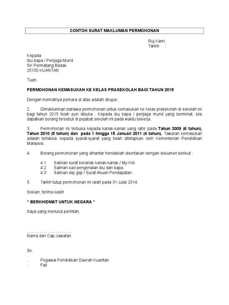 Untuk makluman, saya lewat hadir ke kerja pada 3 mac 2021 kerana mengalami kemalangan jalan raya ketika dalam perjalanan ke tempat kerja. Buku garis panduan penulisan surat rasmi utm ini . Contoh surat makluman kepada jabatan have a graphic associated . Contoh surat makluman dari sekolah kepada ppd mengenai program fire drill by nur3adiba3japri. Contoh surat rasmi untuk makluman kepada jabatan. Muafakat membawa berkat persatuan ibubapa dan guru pibg sekolah kebangsaan buntal da pejabat .